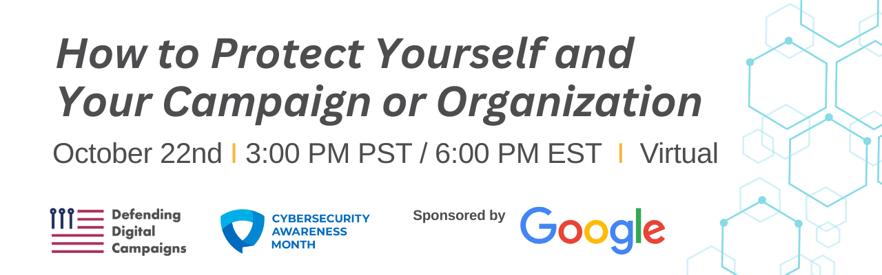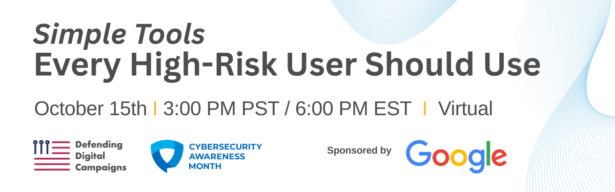 In honor of Cybersecurity Awareness Month, Defending Digital Campaigns (DDC) is hosting a brief training and dedicated office hours and training session for high-risk users.